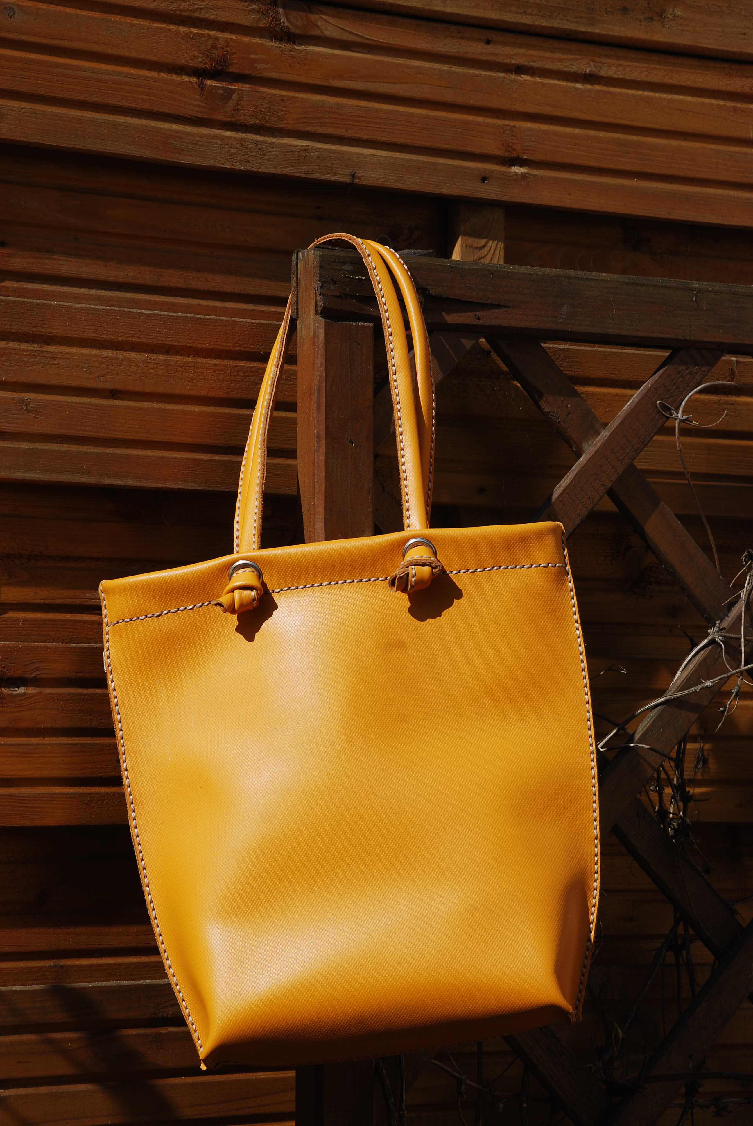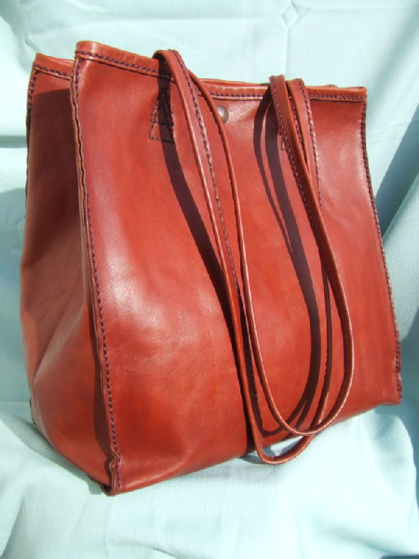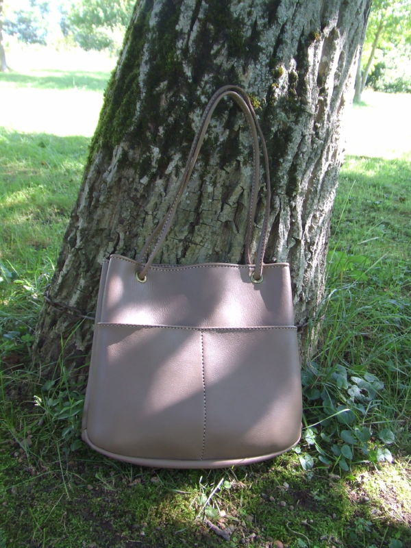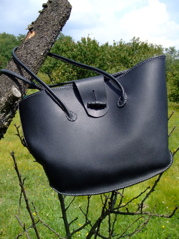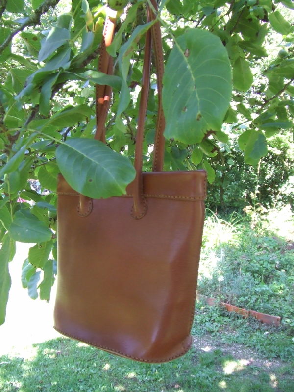 Cuir de veau raidi.Sac cabat avec 2 anses d'épaules doublées attachées par 2 noeuds.