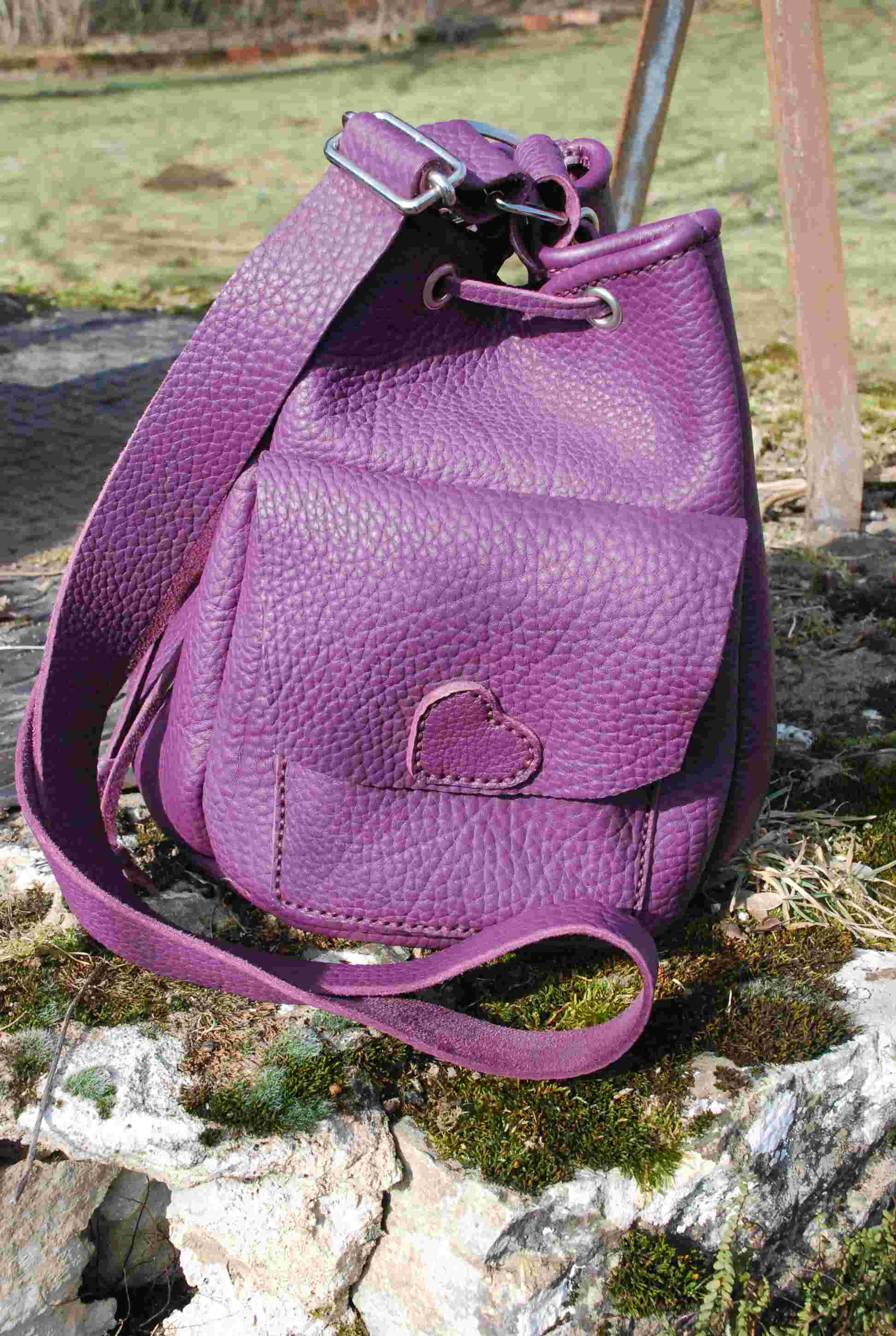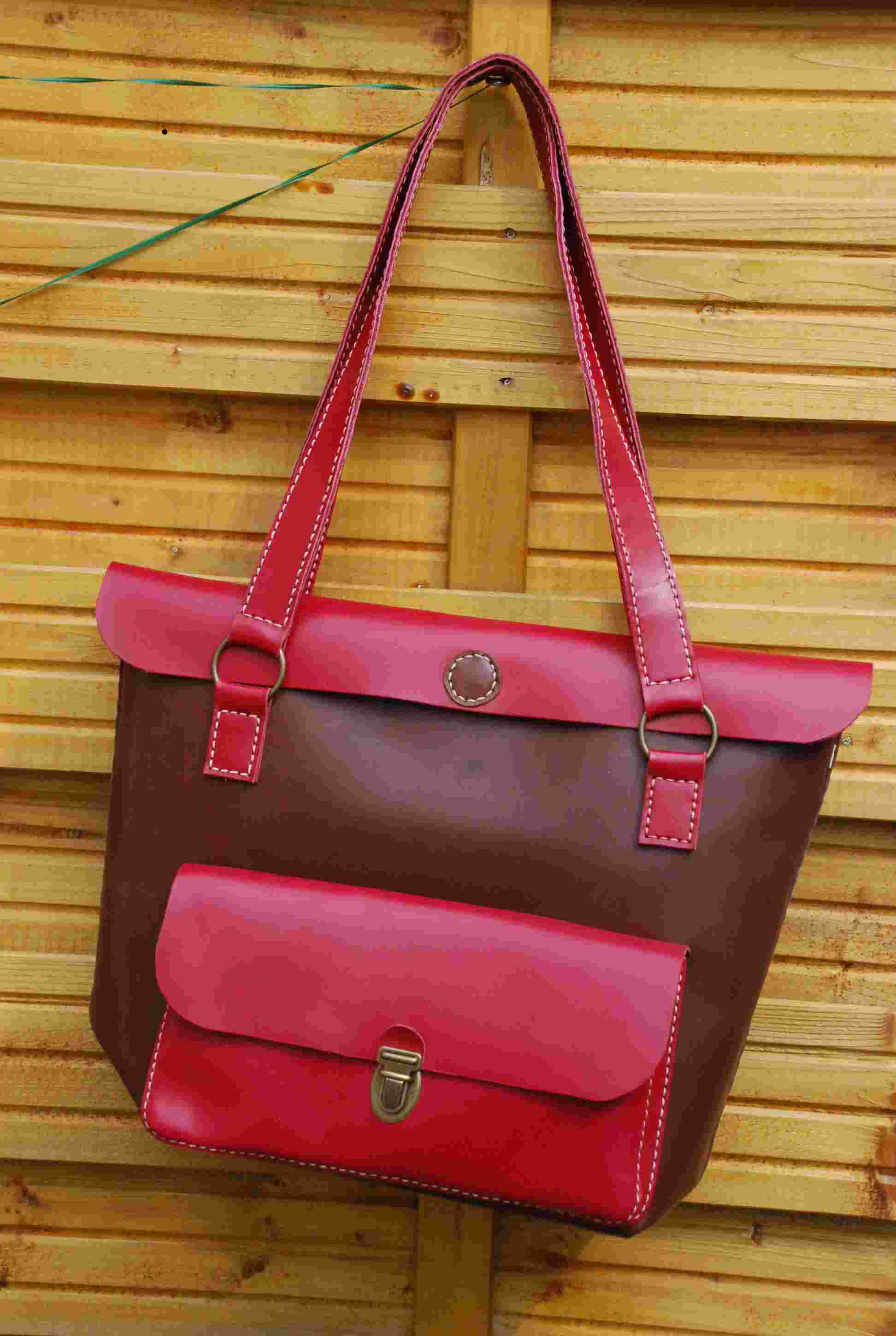 Cuir de vachette lisse, présentée ici en chocolat-framboise.2 anses d'épaule. Petit rabat avec une pression aimantée.
