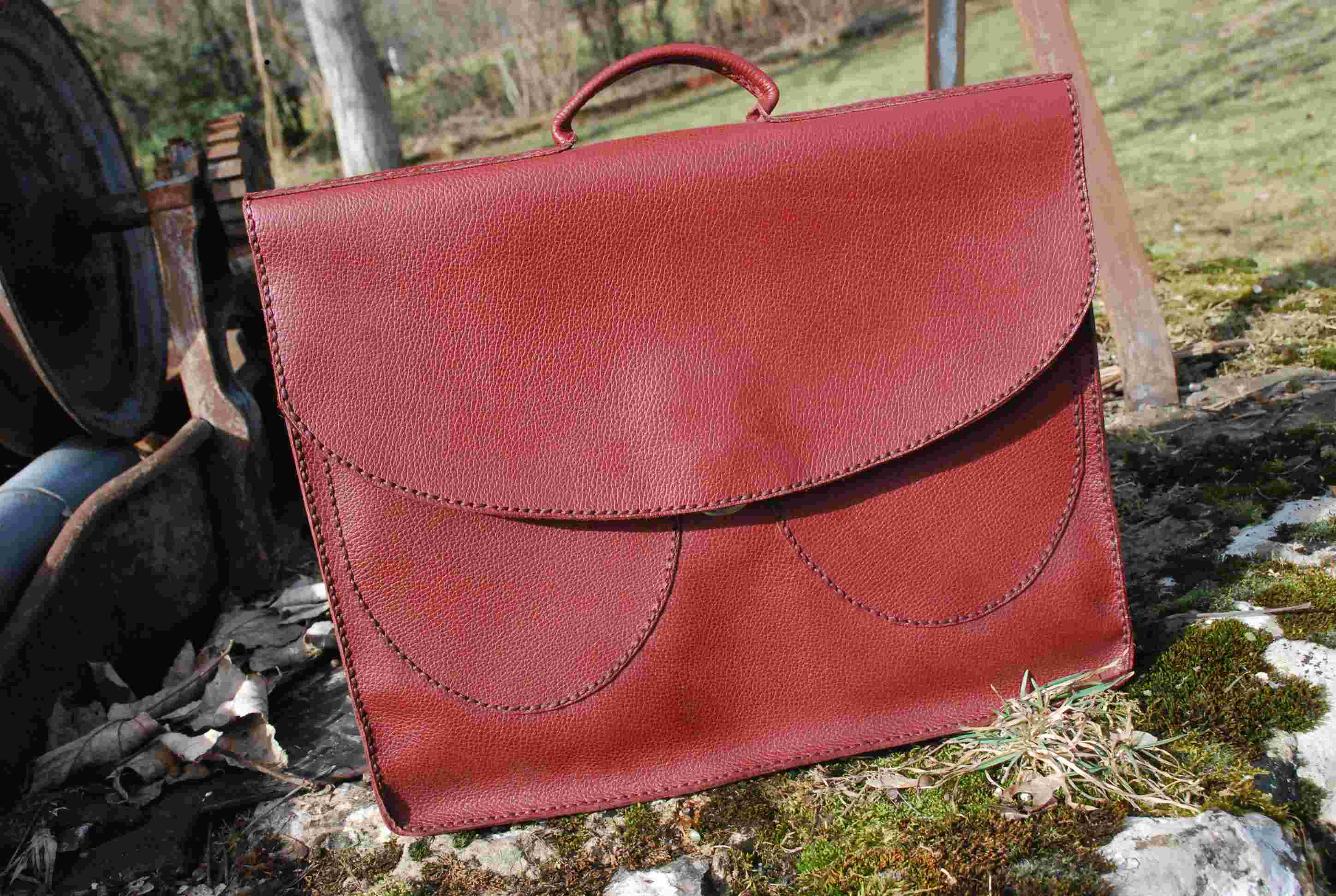 Cuir de vachette, présentée ici en couleur chocolat grené.