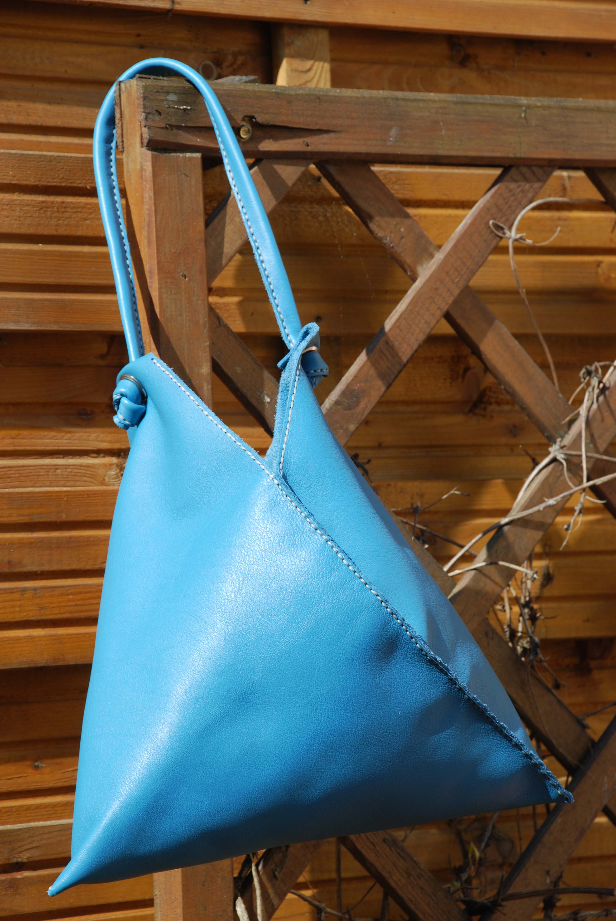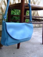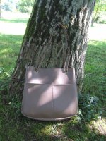 Cuir de veau.Anse d'épaule doublée attachée par 2 noeuds.
